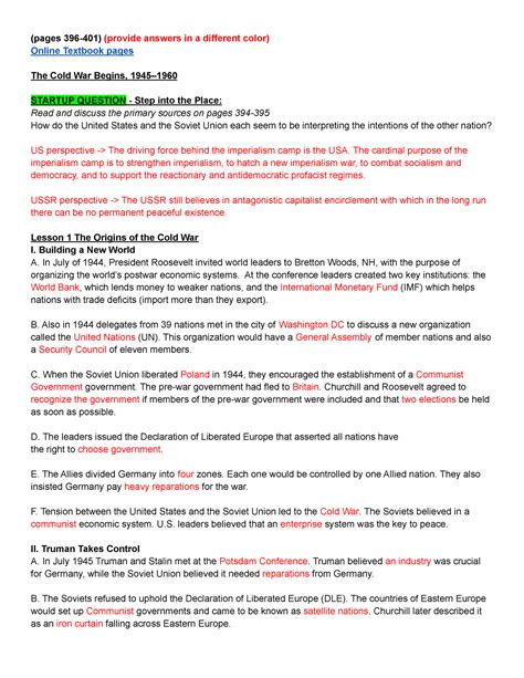 Read Chapter 18 Origins Of The Cold War Guided Reading Answer Key Kindle Editon