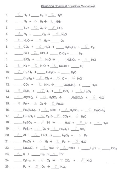 Download Chemical Reactions Ws 1 Balancing Equations Answers PDF